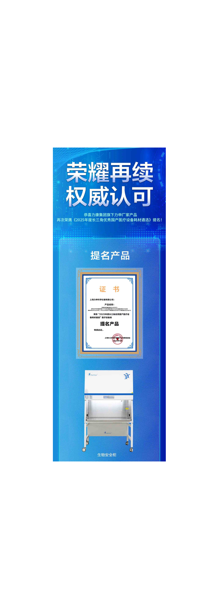 The Heal Force digital operating room, biosafety cabinet, and comprehensive operating table HFeasy400L/HFeasy400EHY produced by Shanghai Lishen Instrument Co., Ltd., a subsidiary of the group, have once again received authoritative recognition for their outstanding clinical application value and technological innovation strength, and have been awarded the honor of "nominated products".