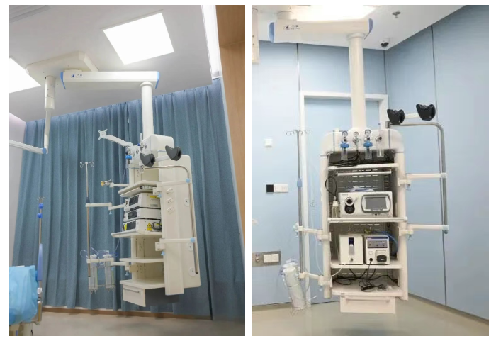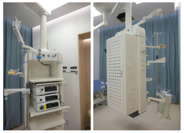Endoscopy center scene with ceiling-mounted equipment in a top-tier hospital in China.