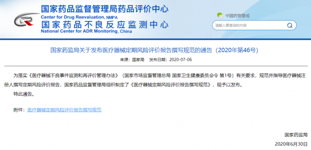 Announcement on the standardization of writing regular risk assessment reports for medical devices